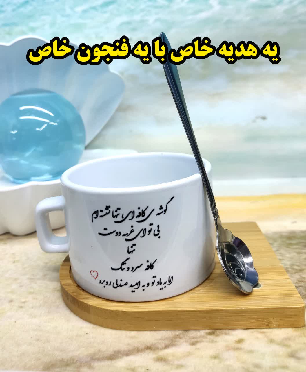 چاپ عکس دلخواه شما روی فنجان با زیر چوبی و قاشق که محل قرار گیری قاشق مگنتی میباشد و یه کار شیک برای هدیه